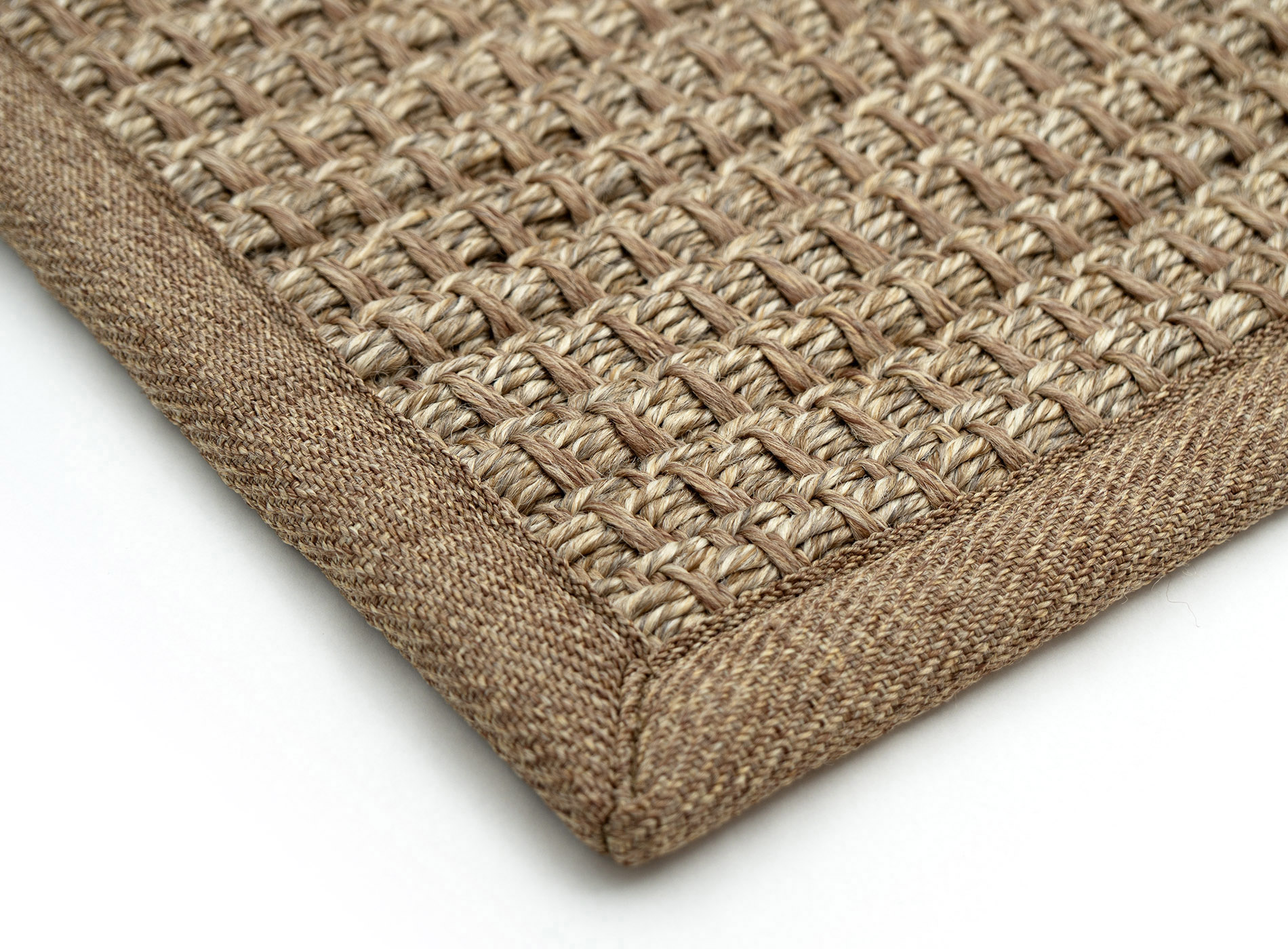 Our latest development is MULTIEDGE Outdoor, which is a border edge made from recycled PET or polypropylene. MULTIEDGE Outdoor is robust and of high quality, allowing the rug's structure to not prominently show through the tape border in most cases. Additionally, the borders are equipped with double stitching, significantly increasing the lifespan.